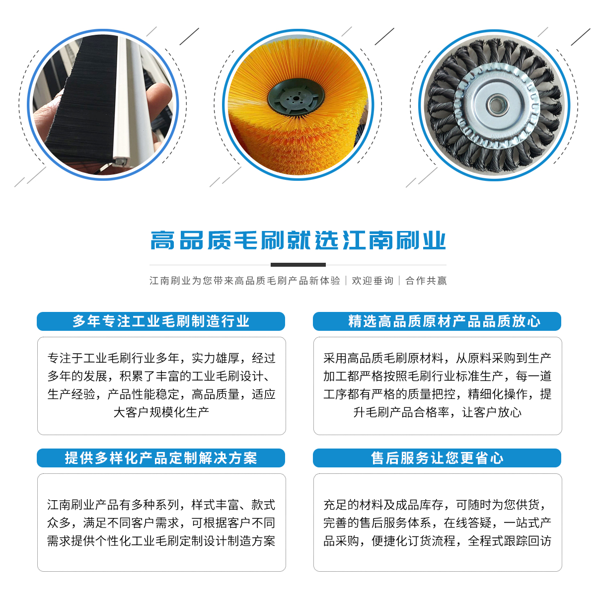 潛山江南刷業有限公司生產各類脫脂線毛刷輥,前道刷洗箱毛刷輥,刷洗箱清洗毛刷輥,酸洗洗刷機毛刷輥,酸洗線毛刷輥,酸洗洗刷機鋼絲刷,干刷機鋼絲刷輥,涂油滾&膠輥&海綿滾&不織布輥、密封刷&鋼刷式密封、輸送帶刷式清掃器&牛...